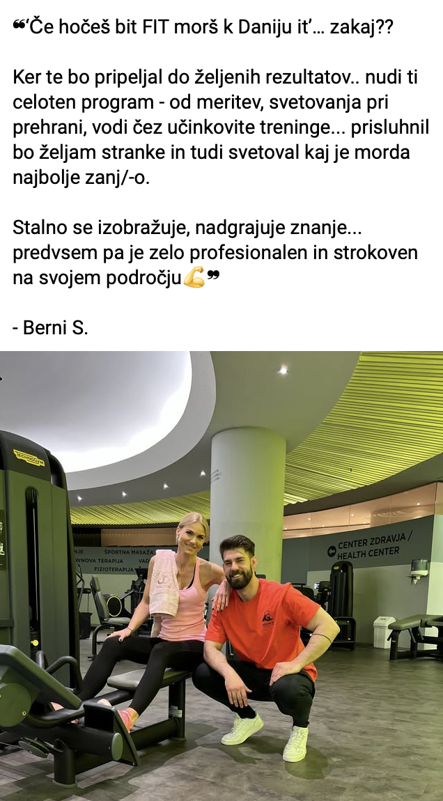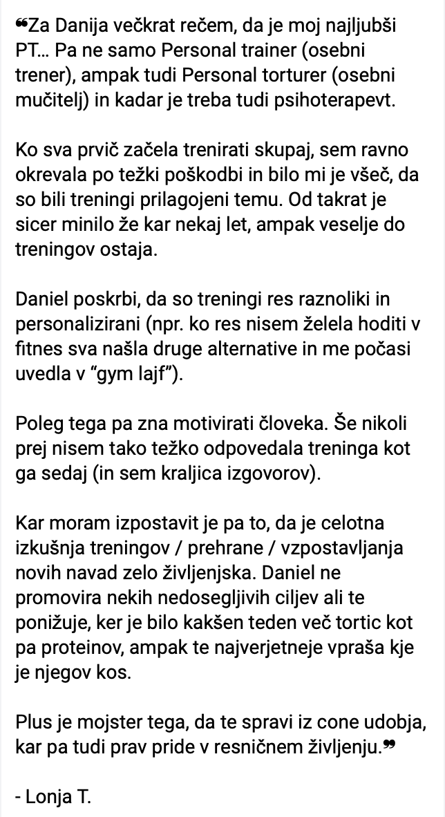 Program, trening in prehrano prilagodim tvojemu življenju in ne obratno.